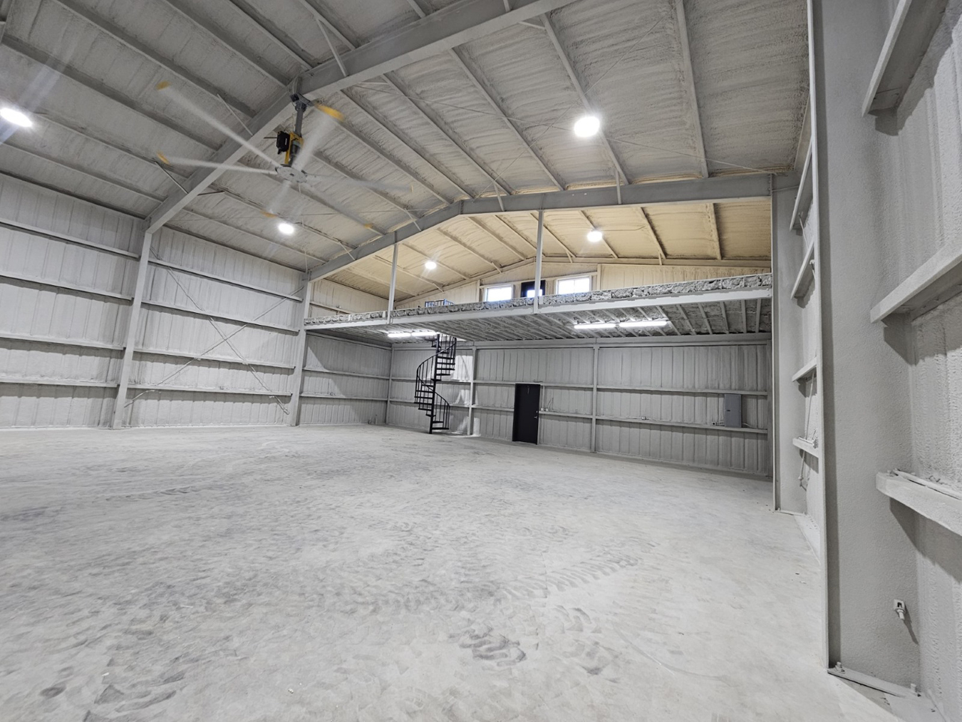 Insulated Airport Hangar For Lease Salado ( 2TX ) UNIT 59 - Great location near center of runway, with 18’ x 5’ balcony overlooking runway. Hangar is 50'W x 52'6" Deep, with 50’ x 16’+ interior Mezzanine. Aircraft door is 47' x 14' clear. Electrical installed with 14' Big Ass Fan, and plumbed for water and sewer but we are still waiting for Infrastructure to the development.
