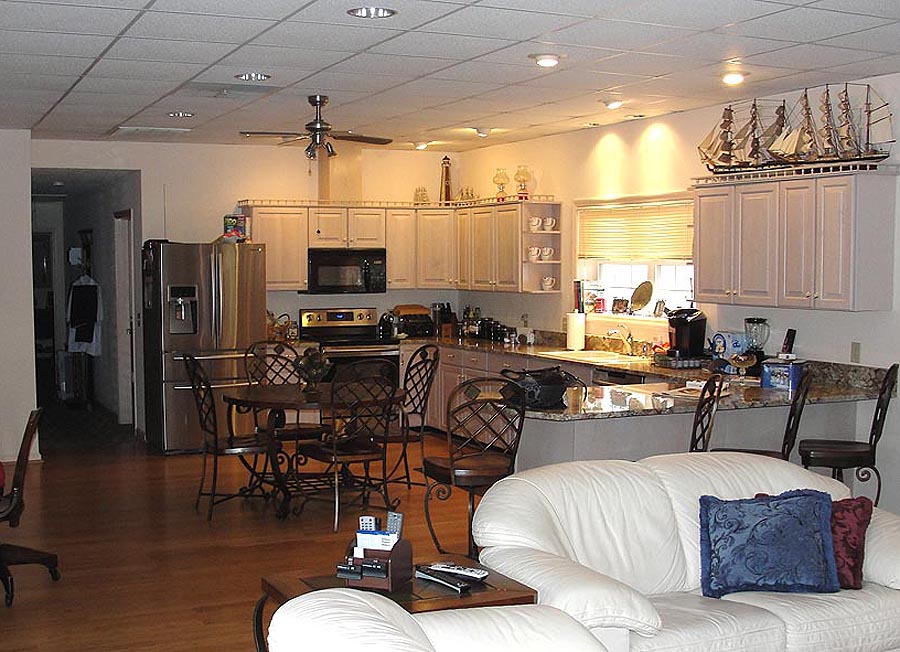 25 Rachel Avenue, Trenton, SC 29847 - Hangar home for sale on 1 acre, with very nice 1,600 sq ft 2 bedroom, 2 full bath living area. Open kitchen, dining and living area with attached 65x70 hanger that has a 46x12 Wilson Electric door. Home has Bamboo floors in den, kitchen one bathroom and laundry room. Master bath has ceramic tile. Bedrooms have carpet. The hanger has a floating wood floor on concrete.