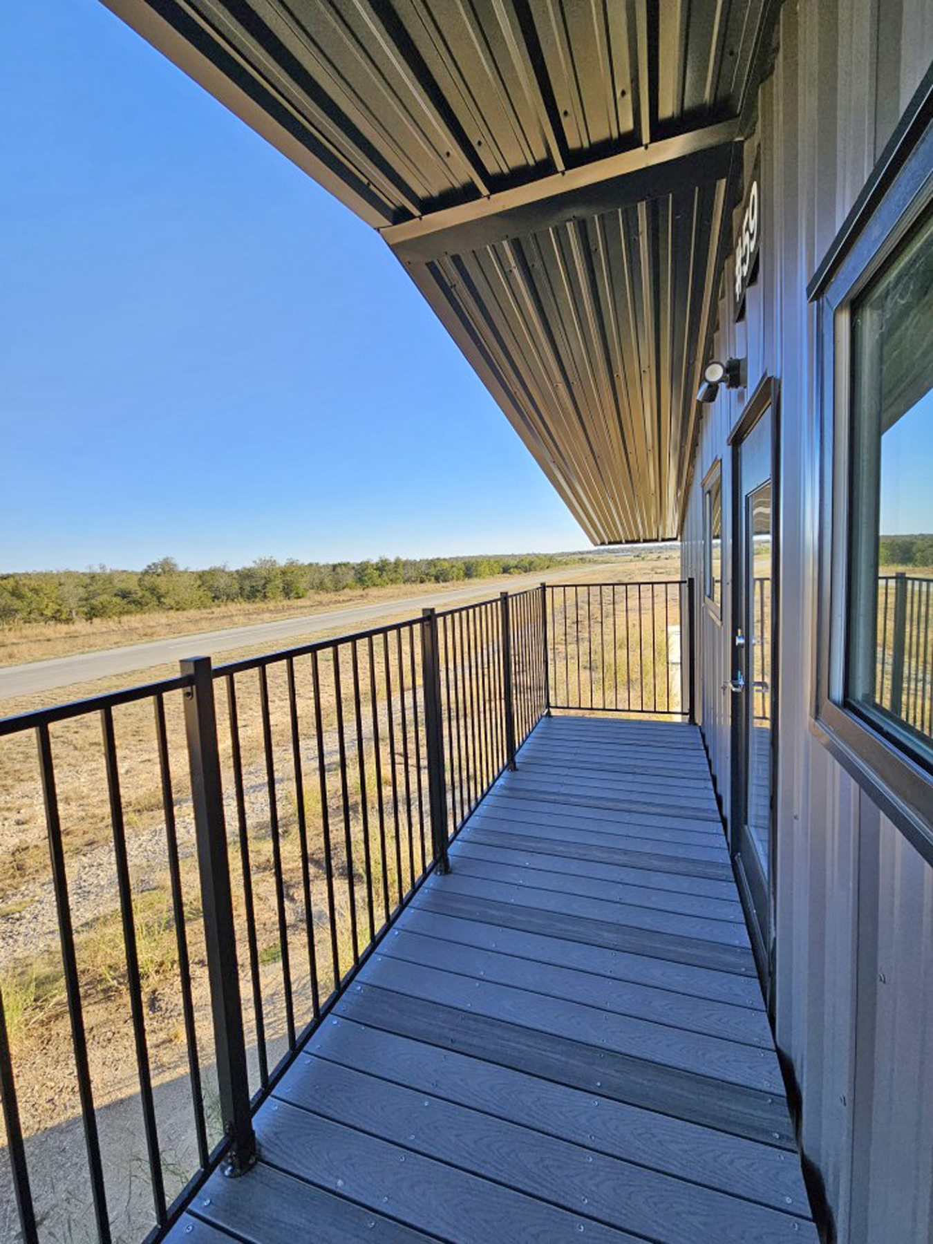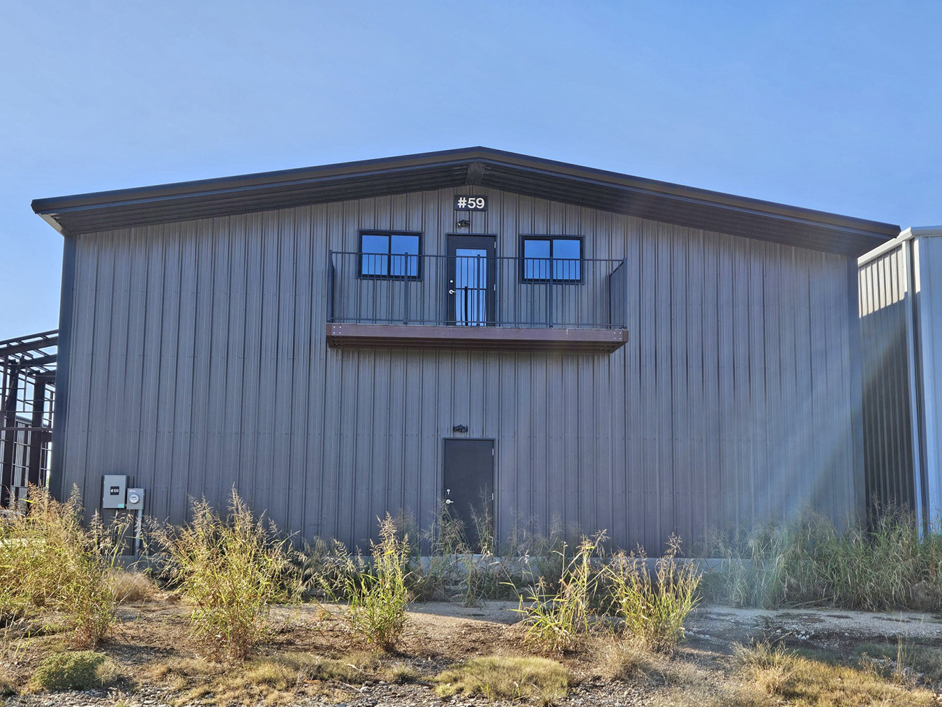 Insulated Airport Hangar For Lease Salado ( 2TX ) UNIT 59 - Great location near center of runway, with 18’ x 5’ balcony overlooking runway. Hangar is 50'W x 52'6" Deep, with 50’ x 16’+ interior Mezzanine. Aircraft door is 47' x 14' clear. Electrical installed with 14' Big Ass Fan, and plumbed for water and sewer but we are still waiting for Infrastructure to the development.