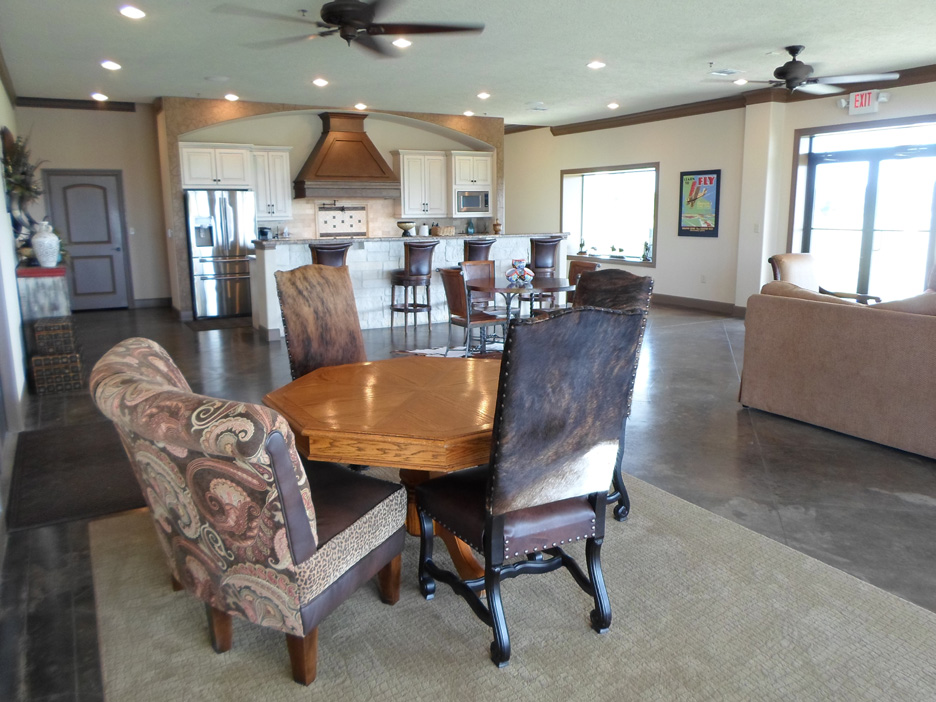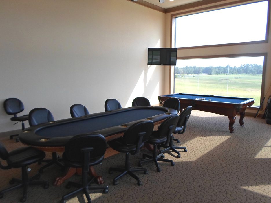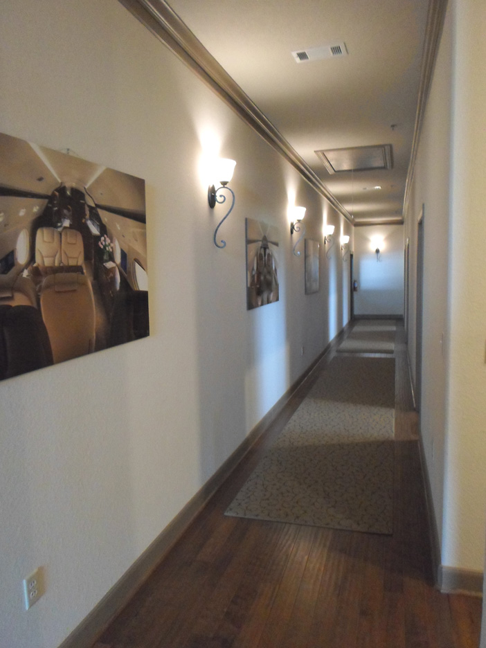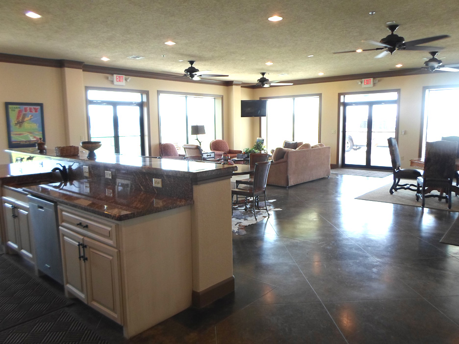 [Separate 2,600 SF of Class “A” office/shop space at other end of hangar]. Hangar is conveniently located at the north end of runway 32/14 with a shared private entrance, and only about 10 minutes north of the Woodlands.Executive / Corporate FBO Space: Ground level features expansive covered porches and entries on two sides, a class “A” reception and entertainment area complete with gourmet kitchen and bar, tiled his/her bathrooms, conference room and multiple private offices.