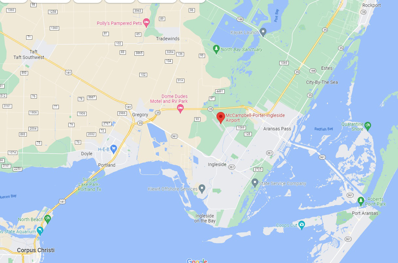 • Publicly owned • Short dfrive to Aransas Pass • Airport ID: (KTFP) • Hangars & Tiedowns • Fuel: 100LL & Jet-A • RNAV - Special Alternate Minimums apply |