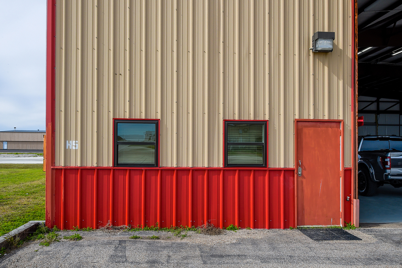 Hangar 5 is 7500 SF (+214 SF upstairs) built around 2006 at McCampbell-Porter Airport, Ingleside TX, KTFP. Less than a 5-minute drive from the Waterfront, Ingleside, and Aransas Pass (the gateway to Port Aransas), it's also under 10 minutes to Portland (Cheniere, Exxon, Voestalpine, et al), and around 20 minutes to Downtown Corpus Christi, the Port and North Beach, Rockport, and Sinton (home of Steel Dynamics). This insulated and reinforced I-beam-frame metal hangar is hurricane-rated to 130 mph, and includes 1.25" steel pins to secure bi-fold doors. It features a large 60x18' front Schweiss bi-fold door for open vertical clearance of just over 15', and 2x Schweiss bi-fold doors at 43x18' each along the rear. The downstairs office has wood laminate flooring, a window unit, and full bathroom w/shower. Above this is a ~214 SF room w/window unit, for second office, storage, etc. The hangar also has LED lighting, 2x pedestrian exterior doors, a utility sink, and storage closet. Offered at: $445,000