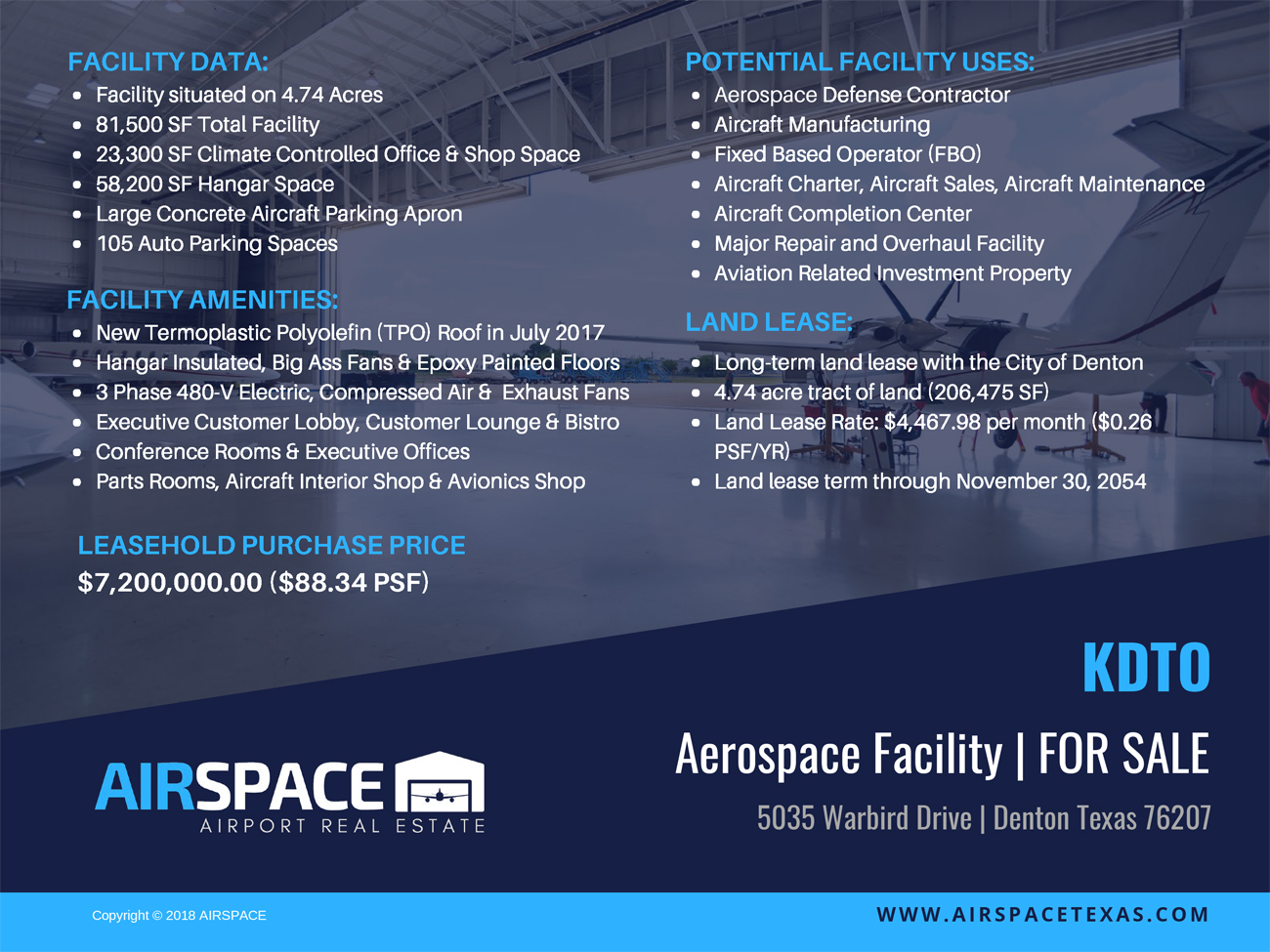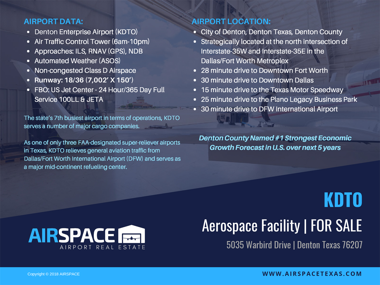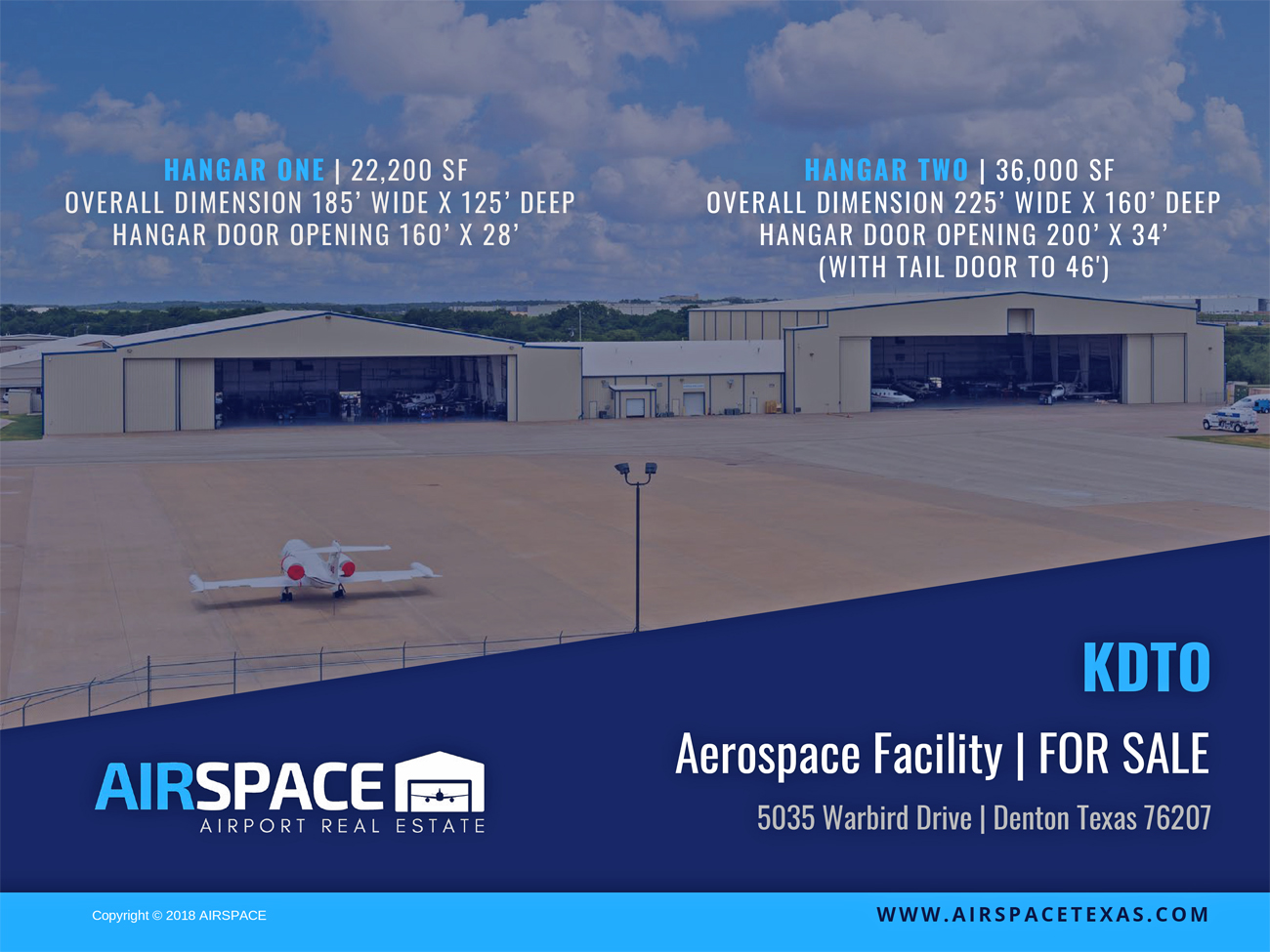 Corporate Facilities Hangars For Sale Denton Enterprise Airport, Texas - KDTO - 5035 Warbird, Denton, Texas 76207