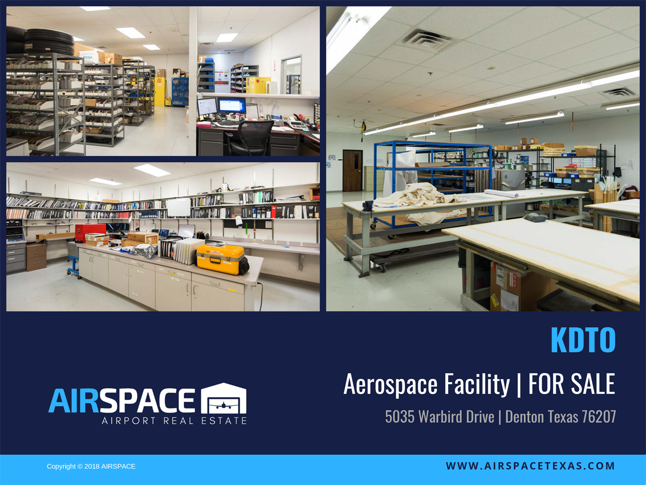 5035 Warbird Dr., Denton, Texas 76207 – 81,500 SF Aerospace Facility for sale at Denton Enterprise Airport (KDTO) , with 23,300SF of climate controlled office, meeting, and shop space. Hangars are fully insulated, have epoxy floors, 3Phase 480v electric, compressed air and exhaust fans.